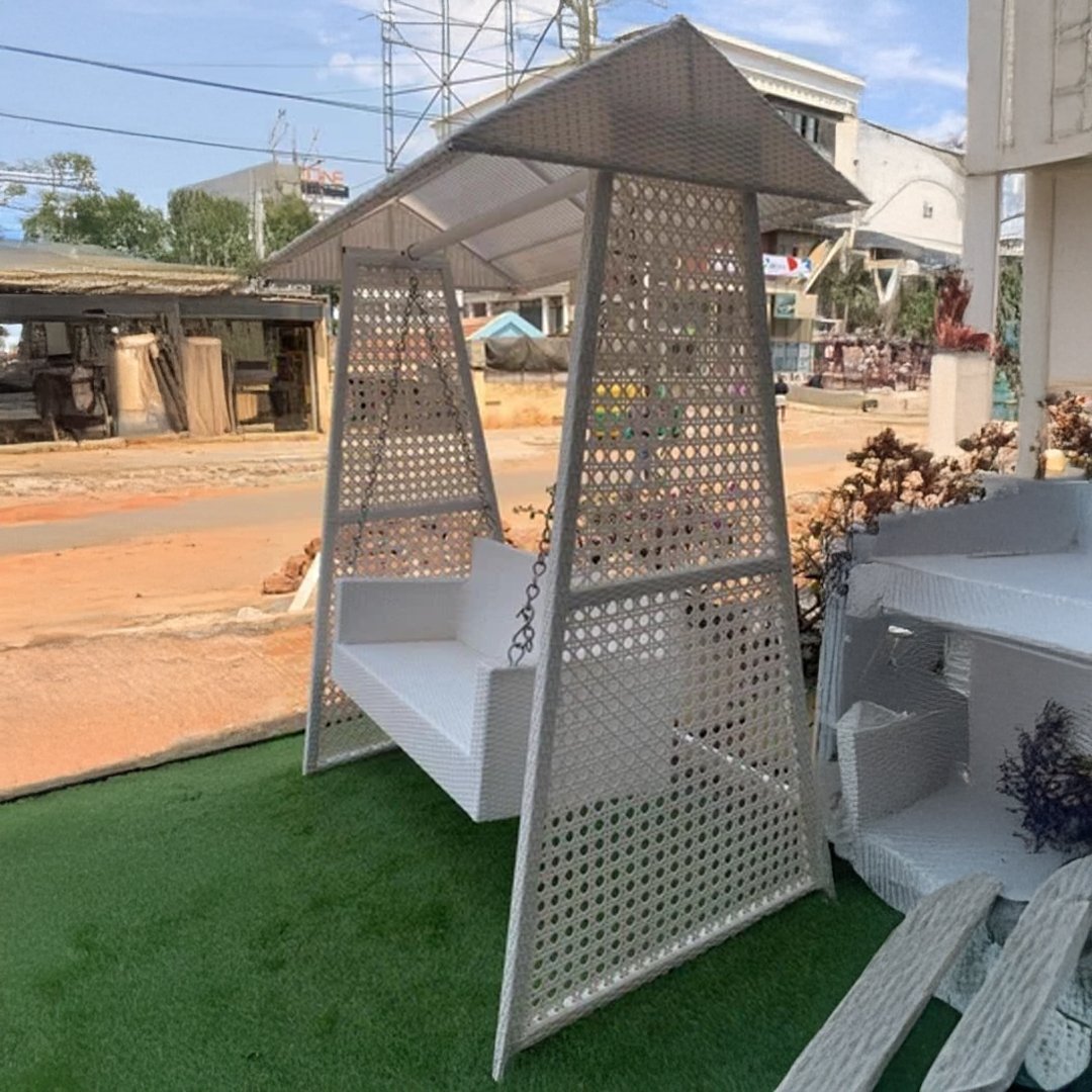 Dull White Wicker Porch Swing