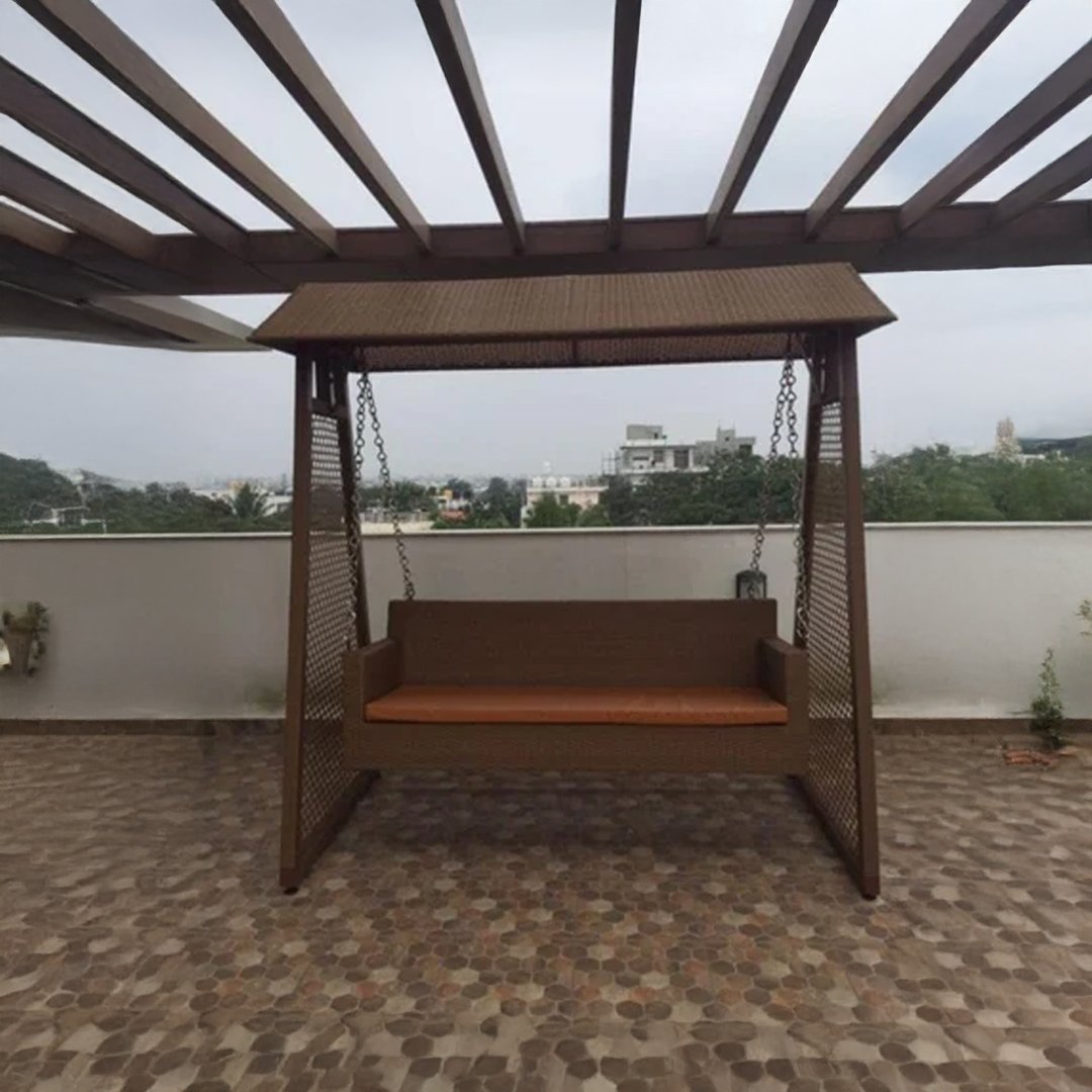 Golden Brown Wicker Porch Swing